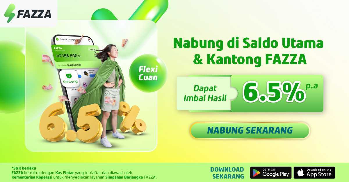 Kalau kamu perhatikan, ada juga banner yang menawarkan bunga sampai 9% per tahun. Kenapa beda?- 6,5% p.a.: Ini adalah bunga standar yang kamu dapatkan di Saldo FAZZA harian (saldo yang siap kamu pakai kapan saja).